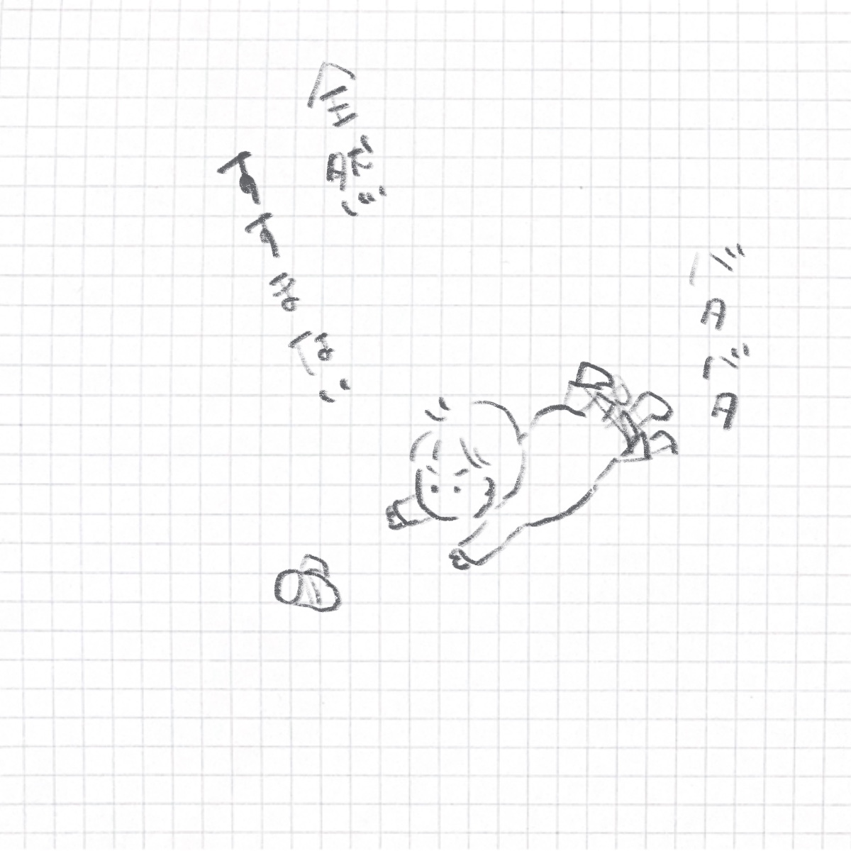 「前に進みたい!」という気持ちがすごく伝わってくるけど、まったく進めていないところが面白い。狙っている物になかなか届かない短い腕と小さな手。バタバタするだけで、床を蹴れない短い足。